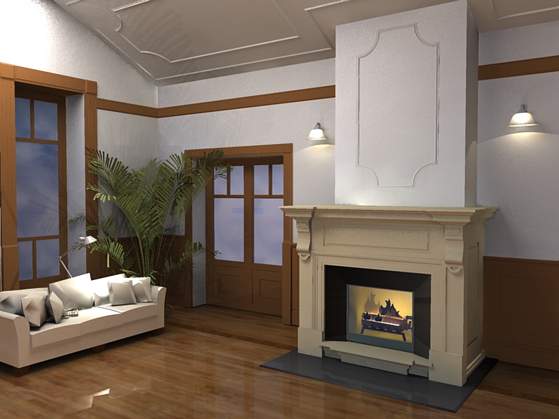In addition to the fireplace, the spatial project shows all the important factors, such as the dimensions of the room, the furniture, the windows and doors, so that we can consider the advantages and disadvantages of different fireplace options.