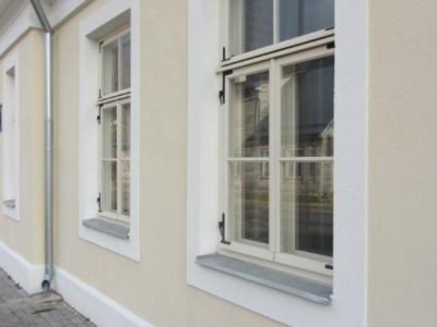 Allpool pildil kapitaalselt ja maitsekalt renoveeritud muinsuskaitsealune maja Rakvere linnas. Arhitekt kasutas oskuslikult nii inter- kui eksterjööris Gildemanni dolomiidist kujunduselemente;  Intiimsed hommikukohvijoomise rõdud, profileeritud trepiastmed, kaminad, riiulid, konsoolid- rikkalik palett kivist arhitektuurseid elemente olles väärika maja tagasihoidlikeks dominantideks.